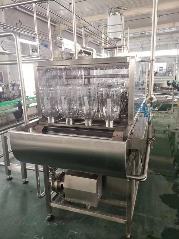4-5L桶水為客戶莊園自用招待水,客戶要求整線的技術(shù)工藝按照自動控制設(shè)計。生產(chǎn)整線采用自動沖瓶機、自動灌裝旋蓋系統(tǒng)、燈檢、貼標(biāo)機等設(shè)備。生產(chǎn)線整體全線自動控制、整線在線監(jiān)控、一鍵自動CIP 清洗,整線集中排污。
