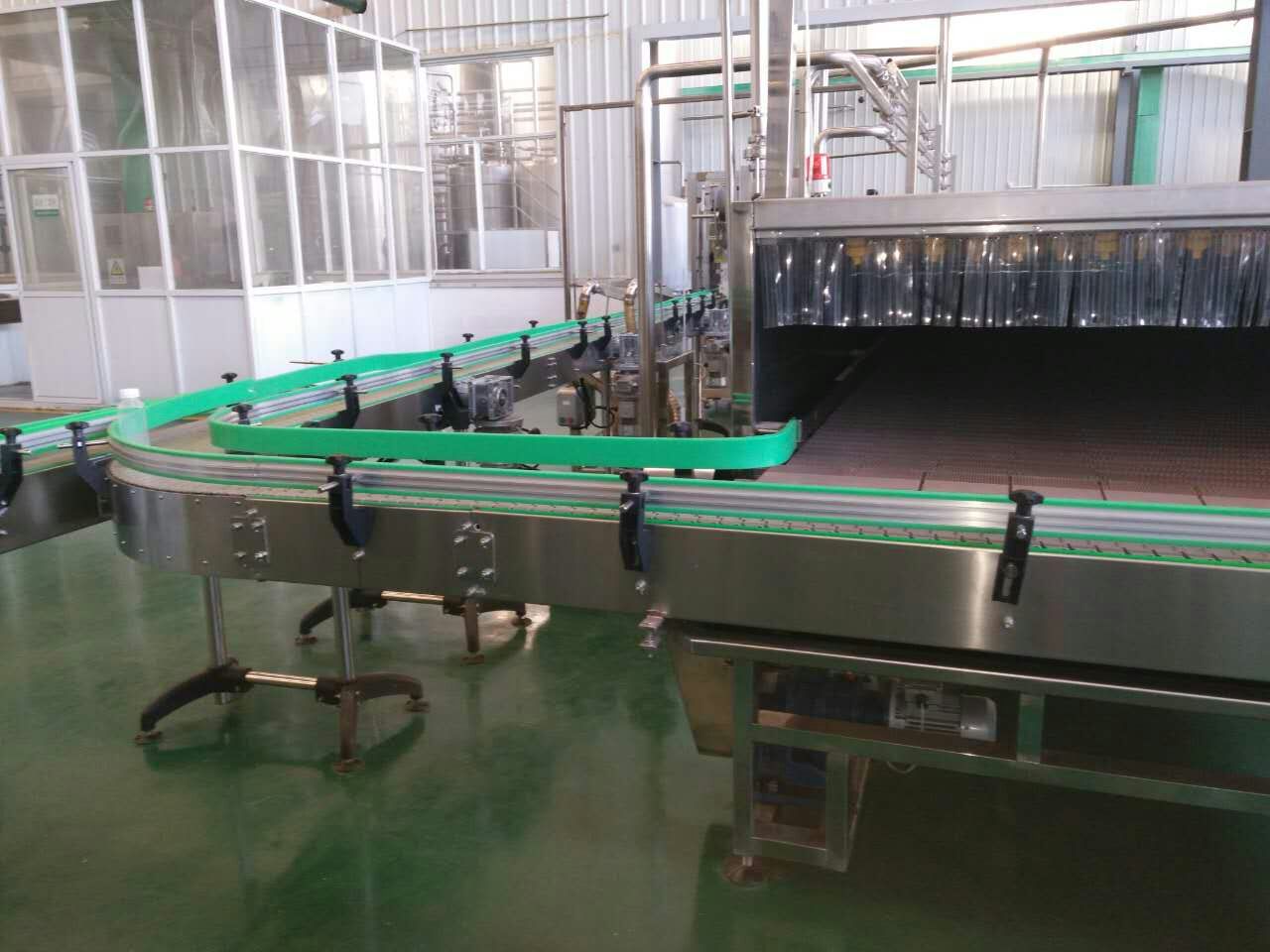 下圖為大連海升輸送彎道及超潔凈灌裝間現(xiàn)場安裝圖