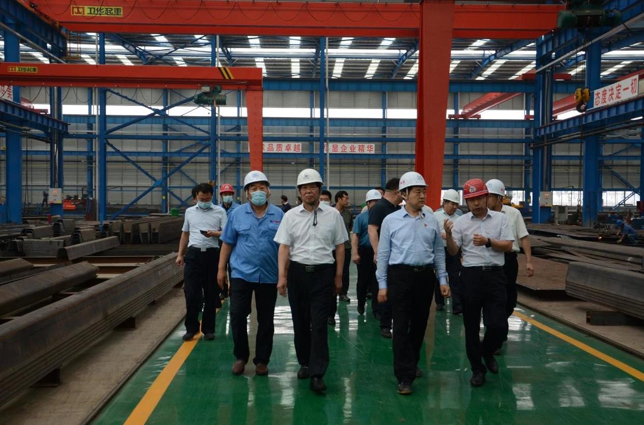 總經(jīng)理金躍山向劉宛康市長(zhǎng)介紹了河南六建鋼結(jié)構(gòu)裝配式產(chǎn)業(yè)園區(qū)的建設(shè)生產(chǎn)情況。劉宛康市長(zhǎng)一行先后參觀(guān)了鋼橋梁生產(chǎn)線(xiàn)預(yù)處理車(chē)間、單元件車(chē)間、總拼車(chē)間,并詳細(xì)了解了公司的產(chǎn)品優(yōu)勢(shì)、技術(shù)創(chuàng)新、市場(chǎng)發(fā)展前景等。